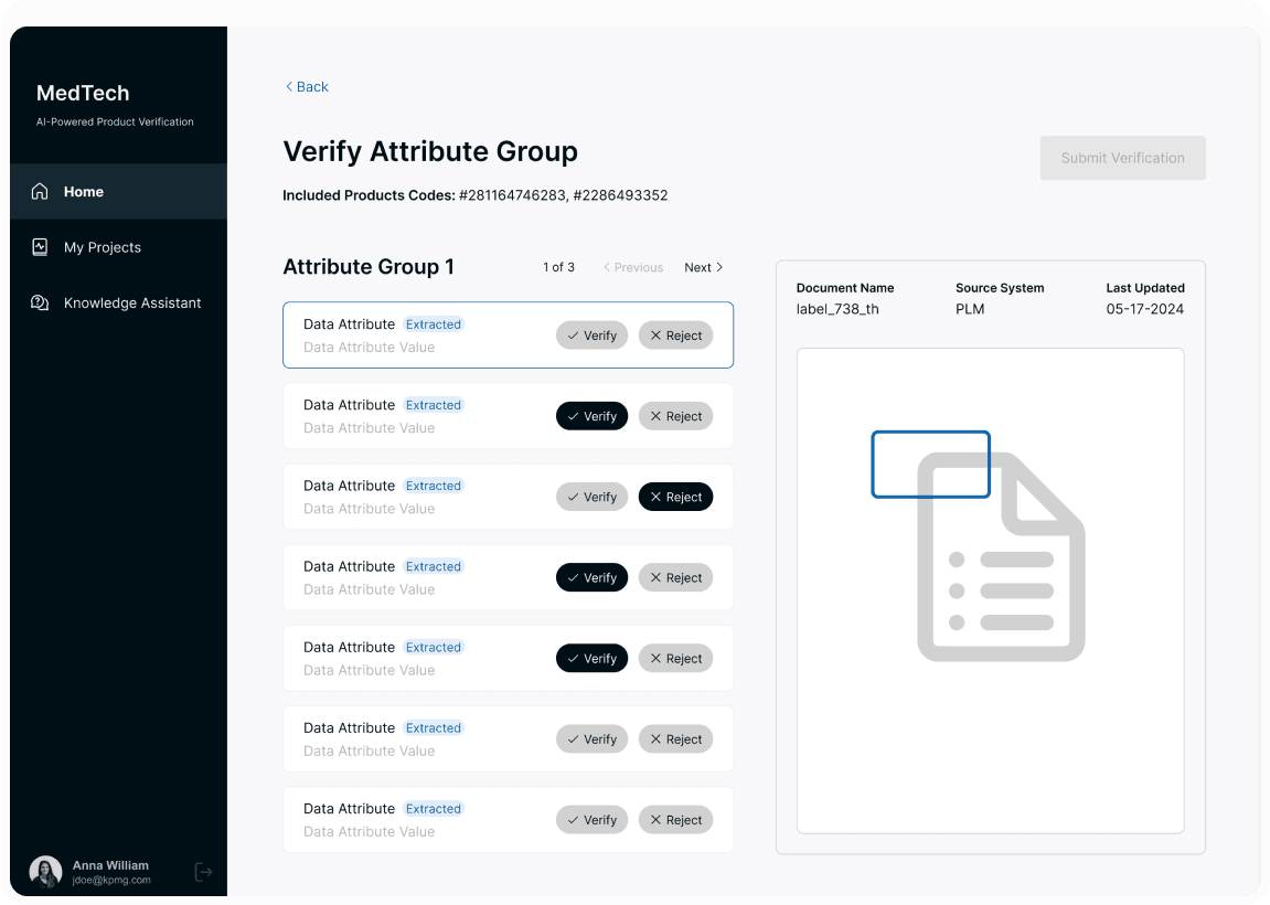 AI-driven application to streamline MedTech product verification and storage for regulatory submission.