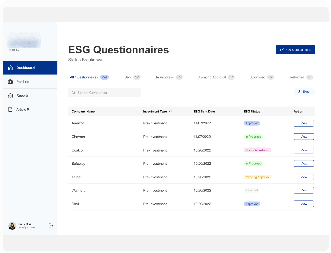 Redesign of a financial services company’s ESG data tool used to track and evaluate potential investments.