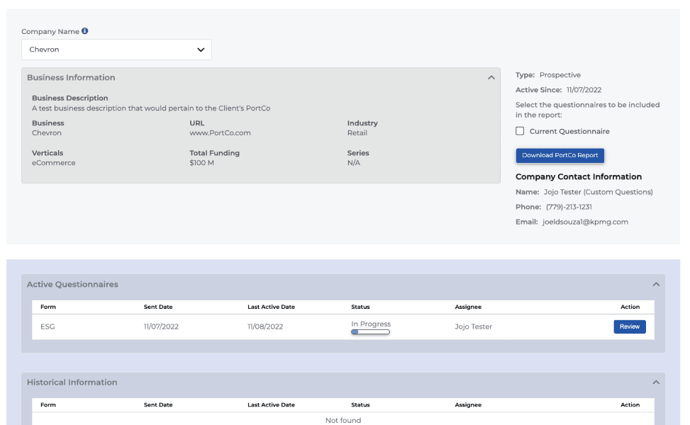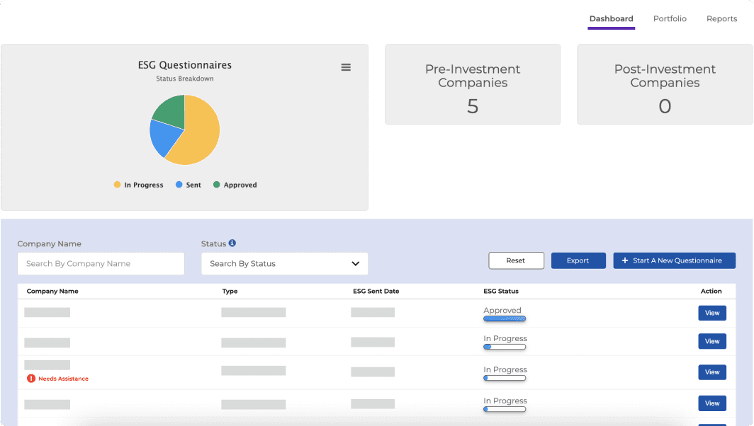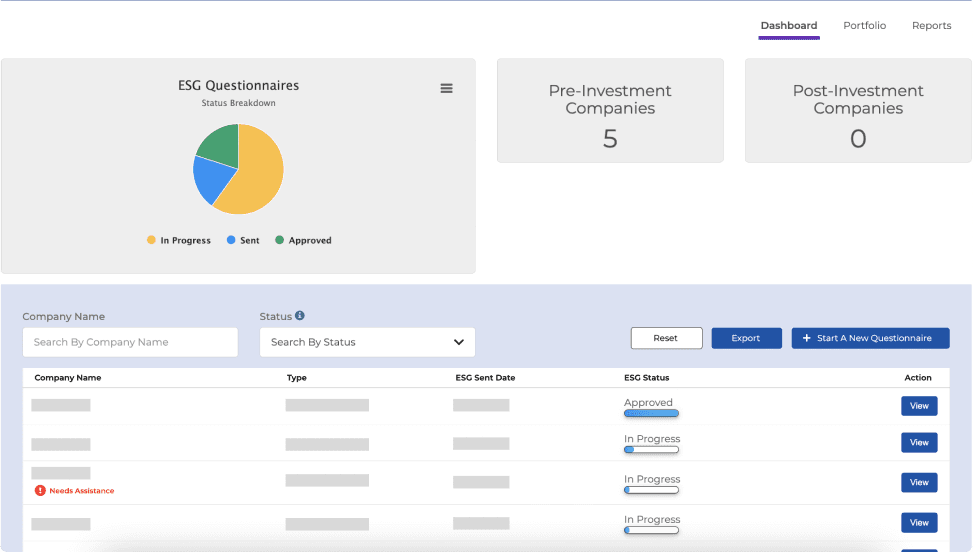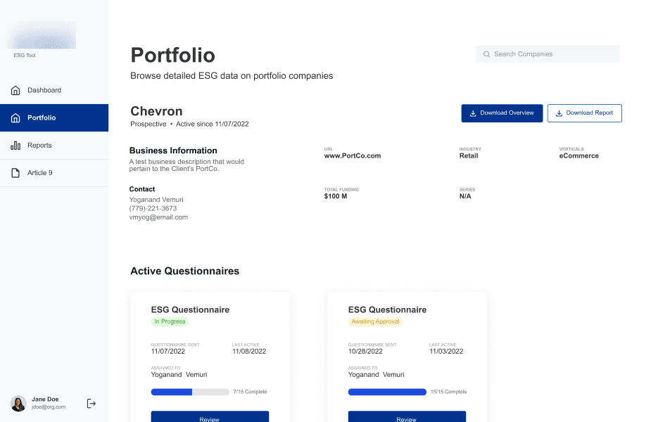 The client needed a platform to capture and evaluate ESG (Environmental, Social, Governance) data for potential and existing investments. Because ESG reporting requirements frequently evolve, the platform needed to remain flexible while supporting accurate data capture across early-stage portfolio companies.